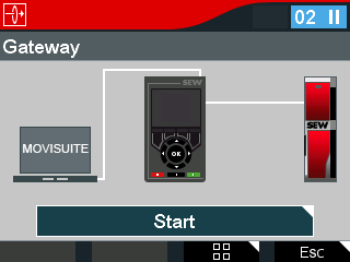 - Om een actieve verbinding tussen MOVISUITE® en de regelaar op te bouwen, drukt u op de toets <OK> op het programmeerapparaat.