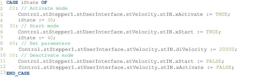 Wenn ein Modus aktiv ist, darf kein anderer Modus aktiviert werden. Folgendes Codebeispiel zeigt die Aktivierung und Deaktivierung des Velocity-Modus: