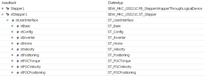 Die Substrukturen von ST_Stepper sind in folgender Tabelle kurz beschrieben. Weitere Informationen finden Sie im Kapitel Verwendete Variablen.