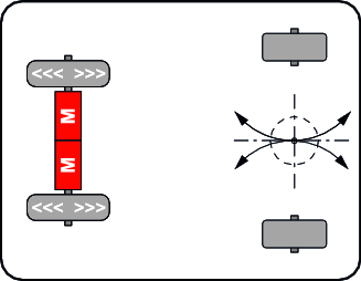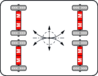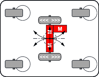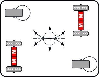 | Bei einem Fahrwerk mit 2 Drehschemel-Antriebsmodulen ist eine omnidirektionale Fahrweise bei hohen Lasten möglich.