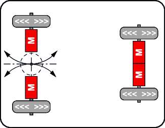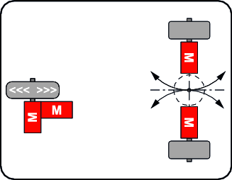 | In the case of a horizontal drive with differential drive module and steering drive module, the drive force is supplied exclusively via the differential drive module.