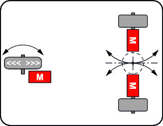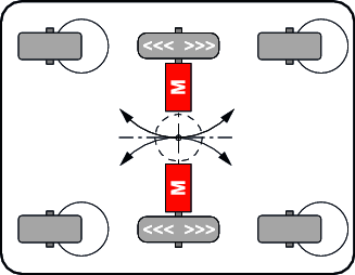 | In the case of a differential drive module, the vehicle is steered by speed differences of the two rigid drive wheels – similar to the principle of a tracked vehicle. Swivel casters at the front and/or rear keep the system stable. Disadvantages include restrictions on maneuvering capabilities, load distribution and longer times required for complex maneuvers.