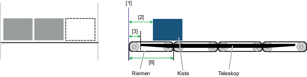 Das Kombiteleskop kann mit einem und bis maximal 4 Riemen realisiert werden. Beim Verwenden mehrerer Riemen, werden in den Betriebsarten "Einlagern" und "Auslagern" alle involvierten Riemen synchron verfahren. Des Weiteren kann der Ein- bzw. Auslagervorgang für jeweils eine Kiste oder für mehrere Kisten gemeinsam erfolgen.