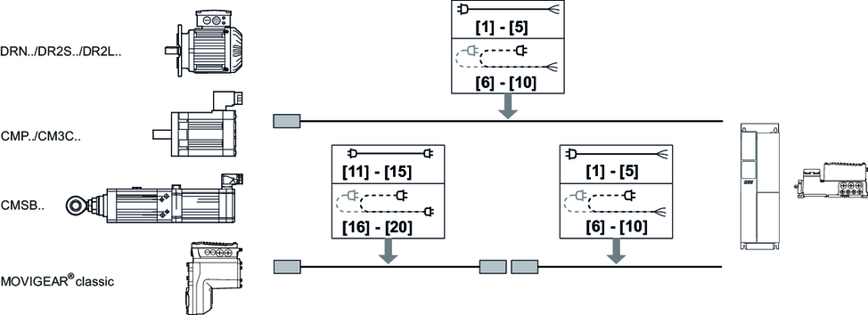 • Motorkabel für Motoren mit BK- oder BP-Bremse mit MOVILINK® DDI-Schnittstelle