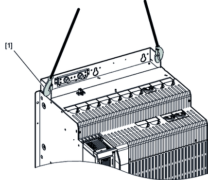 - Falls vorhanden, verwenden Sie immer alle Anschlagpunkte. Die Anschlagpunkte sind nur für die Masse des Produkts ausgelegt. Bringen Sie keine zusätzlichen Lasten an.