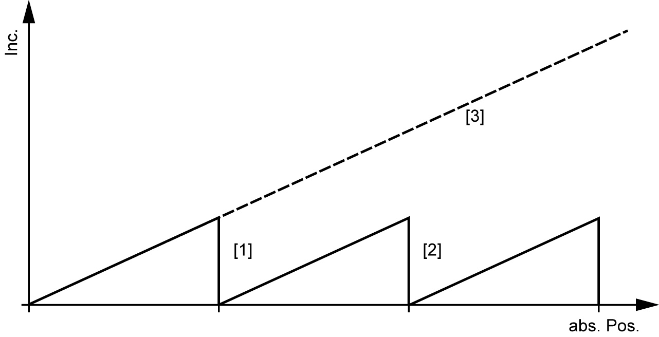 Die Geberüberläufe werden im Umrichter mitgezählt, wodurch die absolute Position bestimmt werden kann.