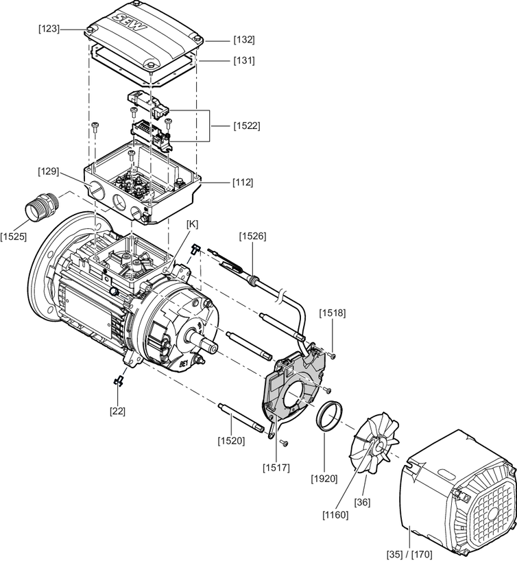 - EI8. built-in encoders and EI8A encoder mounting adapters – DRN../DRU../DR2..71 – 132S motors, with connection unit