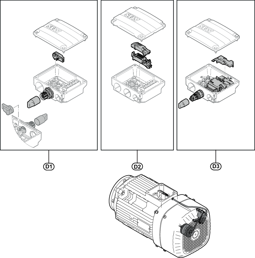 When using prefabricated cables from SEW‑EURODRIVE, you can order the encoders without a connection cover because this cover is part of the cable.