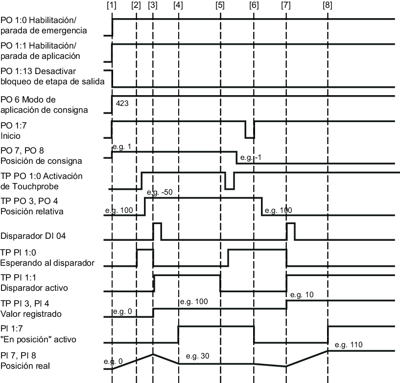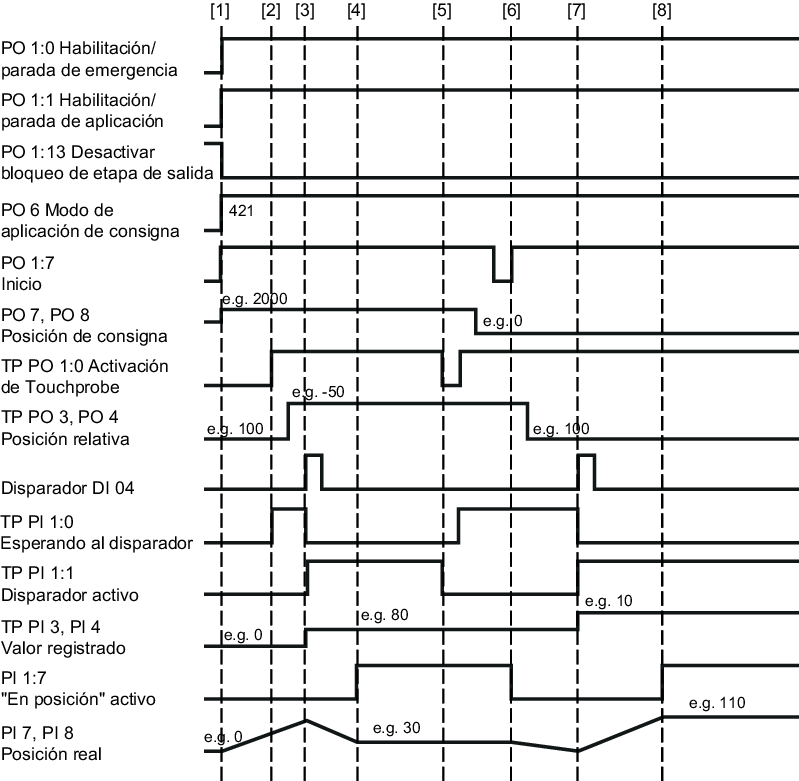 Para aclarar el principio de funcionamiento encontrará en los siguientes capítulos sobre cada uno de los modos de funcionamiento un diagrama de tiempos, así como la secuencia de proceso con una descripción de las señales a activar y los estados de señal.