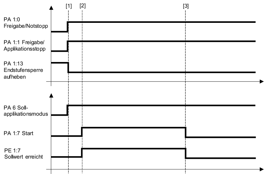 Beim Umschalten in eine andere Betriebsart wird der Antrieb gestoppt. Eine fliegende Umschaltung in eine andere Betriebsart ist nicht möglich.