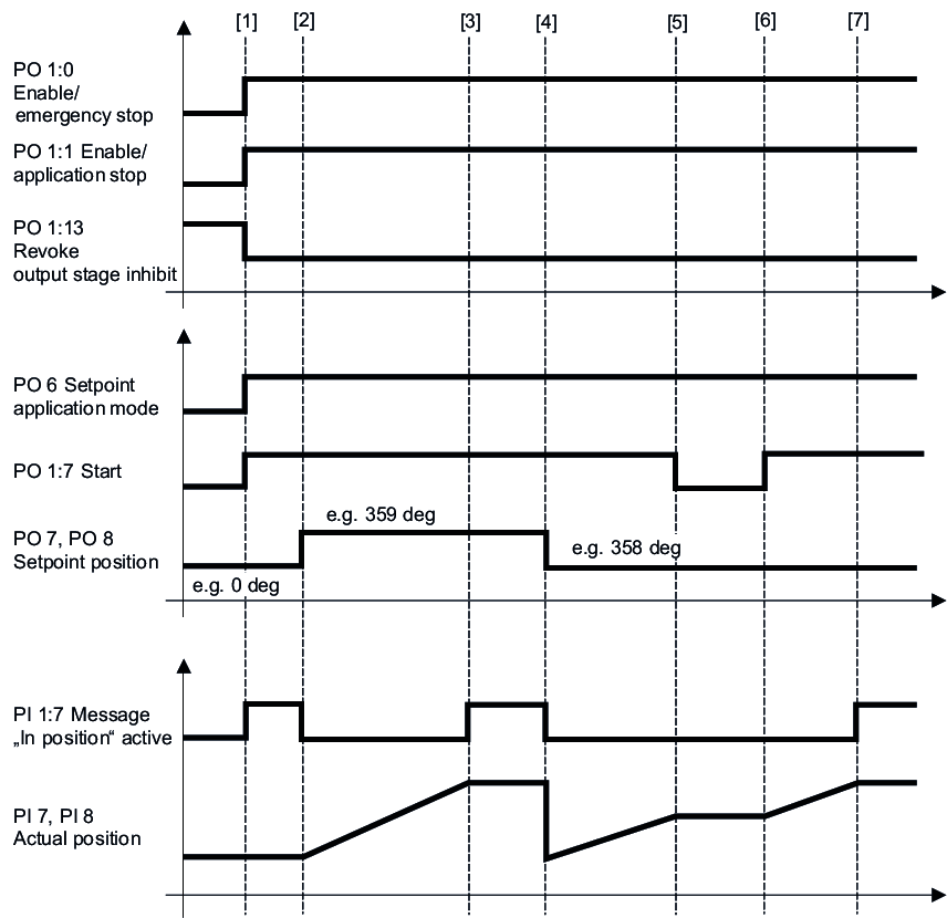 The specified setpoint position must be smaller than modulo max. (here: 360).