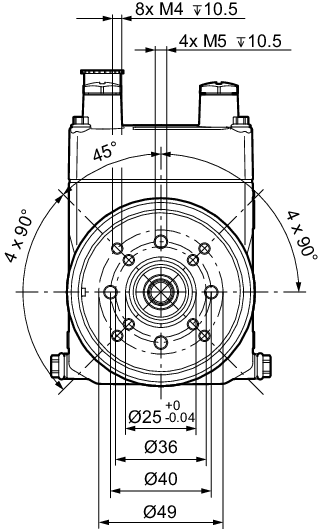 • Para ello, transfiera los orificios necesarios para el resalte de centraje del accionamiento y el círculo primitivo de los orificios de fijación a la placa de montaje y taládrelos (véase el plano siguiente).