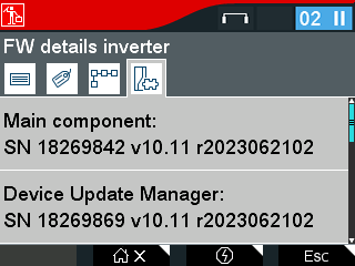 Denne menu oplister varenummer, version og release for omformeren og dens optioner.