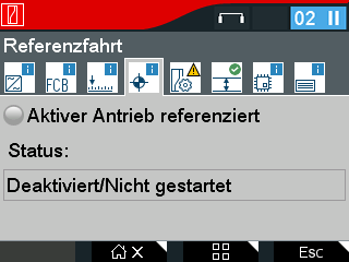 Dieser Menüpunkt zeigt den Status der Referenzfahrt.