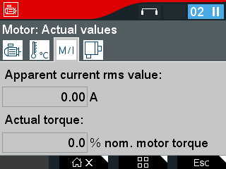 menu shows the properties of the connected motor and