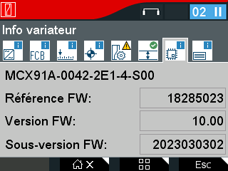Les menus suivants montrent les données de diagnostic du variateur de vitesse.