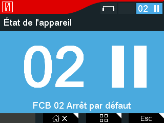 Ce menu montre l'état de l'appareil. Il est possible de définir l'état de l'appareil comme Définition de la vue de démarrage (touche de fonction) via la deuxième touche de fonction, comme tous les menus de diagnostic.