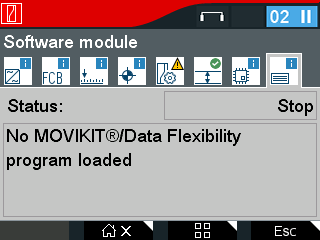 Als er een softwaremodule geladen is, verschijnen naam en versie ervan.