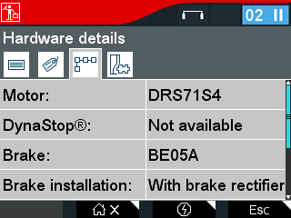 W tym menu wyświetlane są szczegóły sprzętowe układu napędowego.