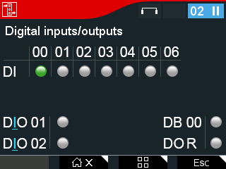 Este menu mostra o valor atual das entradas e saídas digitais suportadas pelo conversor.