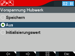 Aus | Der Integrator startet immer mit dem Wert "0". Ein vorhandenes Lastmoment wird ausgeregelt. Der Drehzahlregler kann in der Regel ein Durchsacken des Hubwerks ohne zusätzliche Einstellungen ausregeln. |