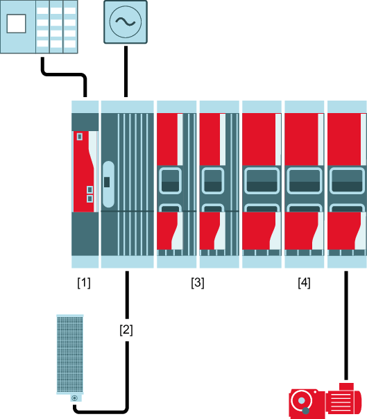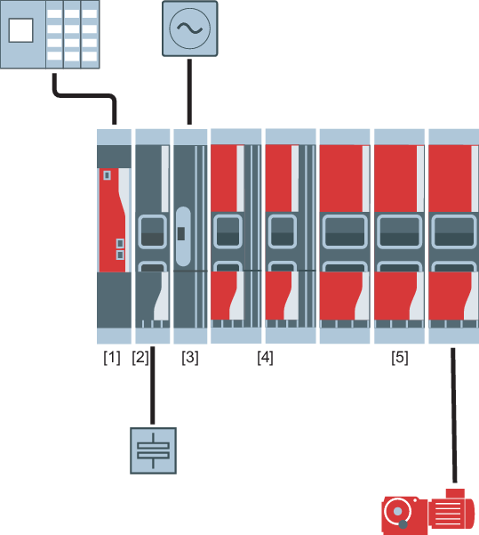 - Módulos de rede com tensão do circuito intermediário regulada, acumulador de energia e módulos de eixo