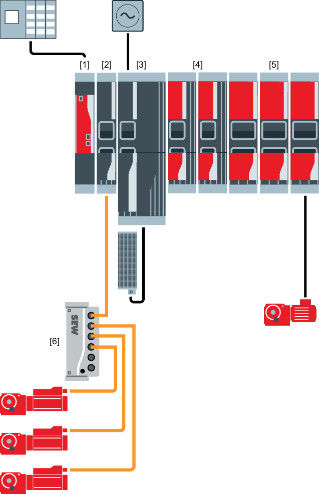 O MOVIDRIVE® modular oferece uma ampla variedade de opções de combinação de módulos. Na prática, algumas configurações básicas provaram ser muito comuns em uso. Essas configurações básicas podem ser expandidas com módulos adicionais.
