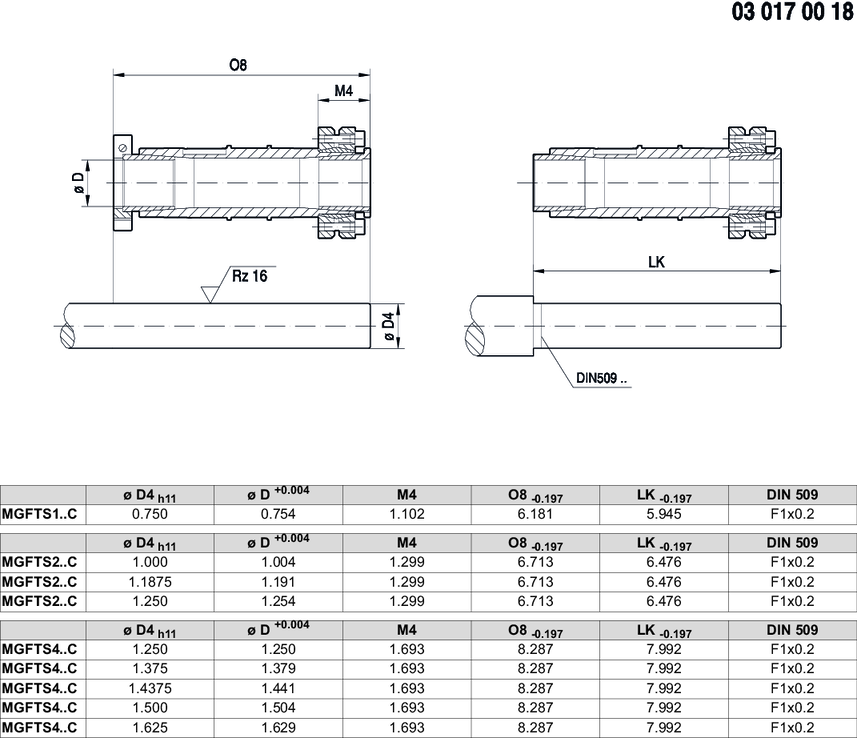Plano dimensional versión de eje MGFTS..C/pulgada