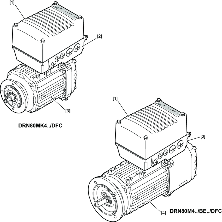 La unidad de accionamiento MOVIMOT® advanced se compone de un variador de frecuencia descentralizado y un motor del tipo DRN.. o DR2C.. (véase la figura siguiente). El variador descentralizado se denomina a continuación tapa de la electrónica.