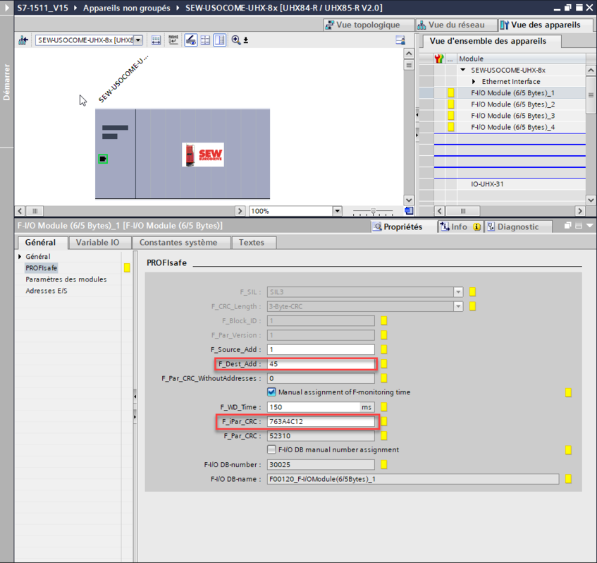 - Affichage des diodes PROFINET IO