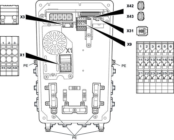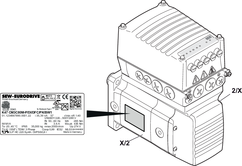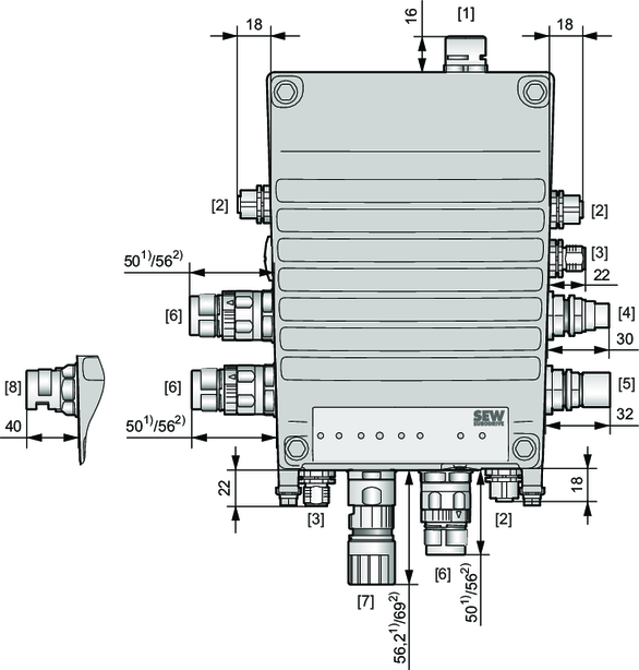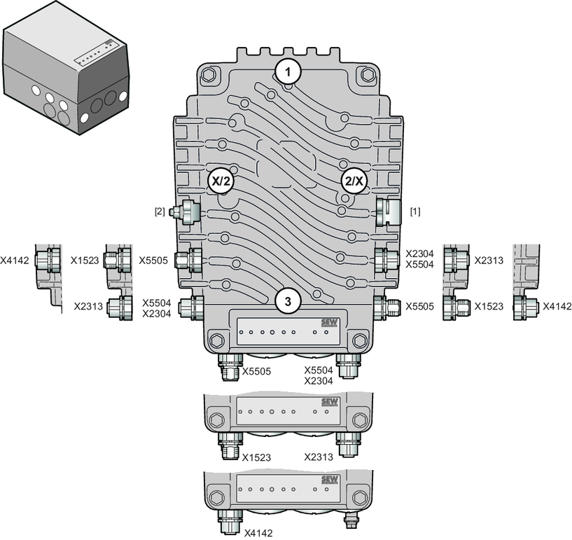 - Posiciones de conectores de la unidad de accionamiento MOVIMOT® performance DFC, DSI tamaño 1