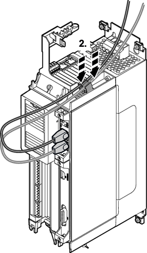 - Enficher les deux câbles dans les raccordements X40 et X41 de la carte.