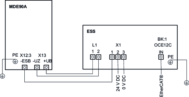 - Conexión del módulo de convertidor CC/CC MDE90A al sistema acumulador de energía