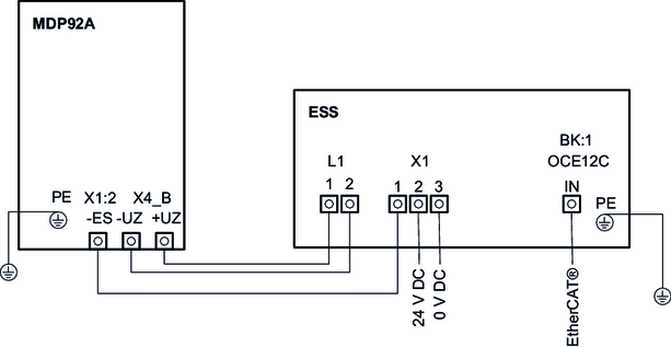 - Conexión del módulo de alimentación MDP92A al sistema acumulador de energía