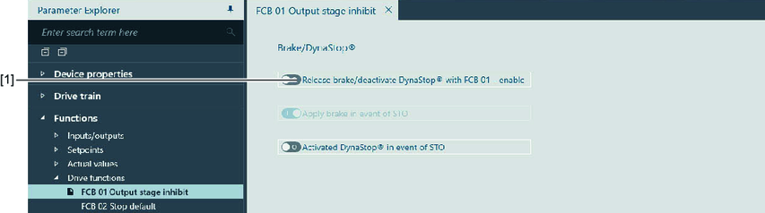 Abrir freio/desativar DynaStop® em FCB01