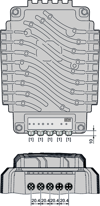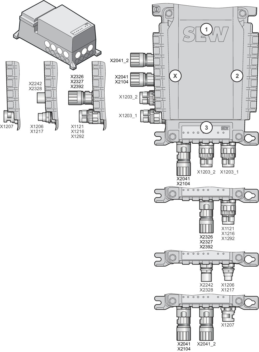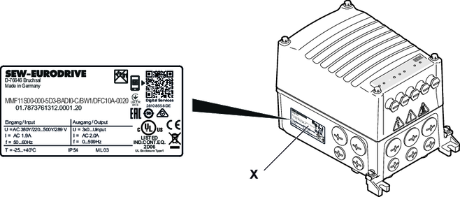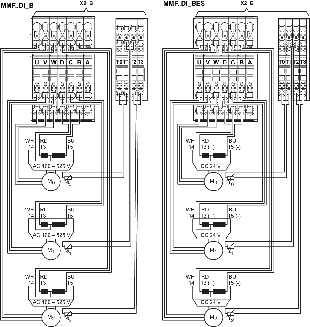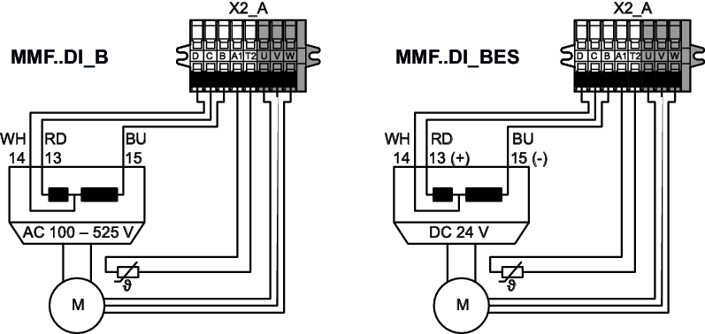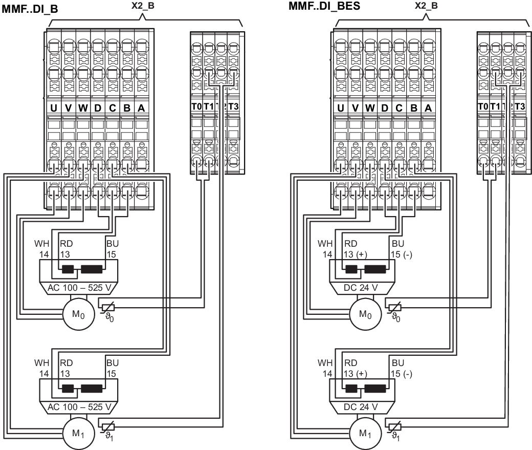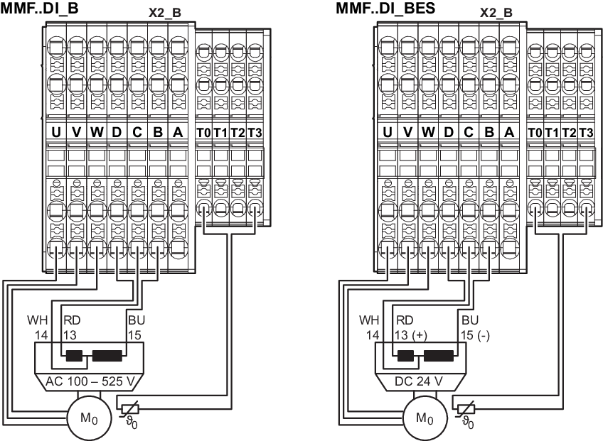 规格MMF1../DFC..和MMF1../DSI..的插接头位置