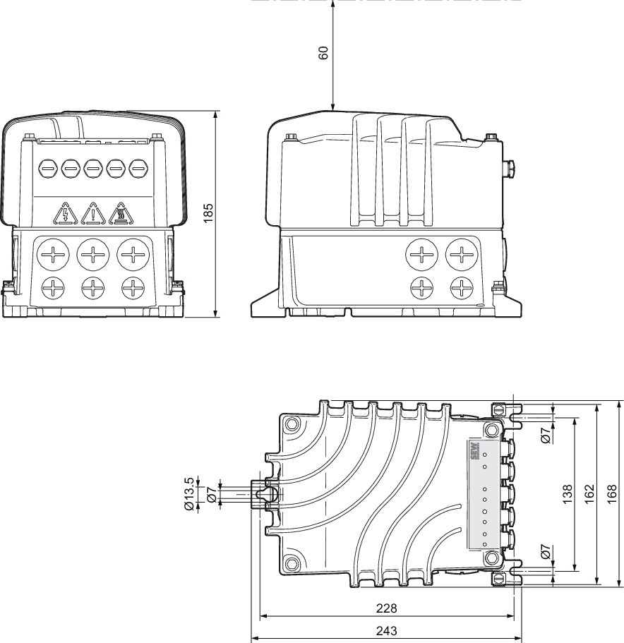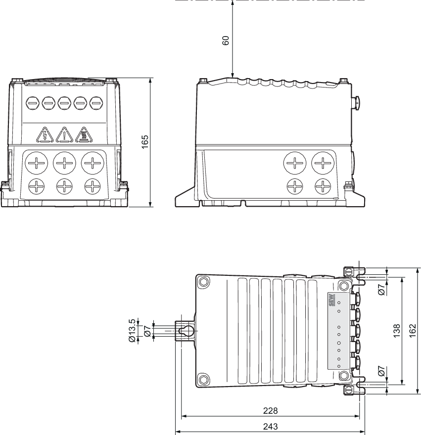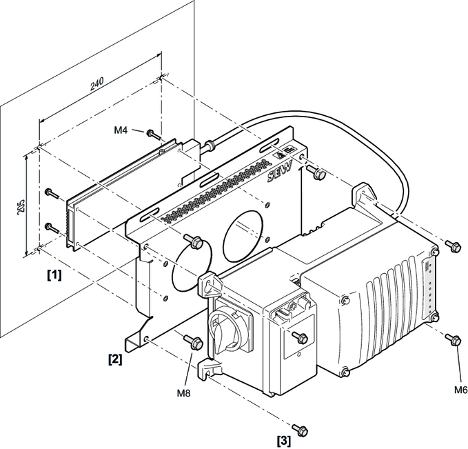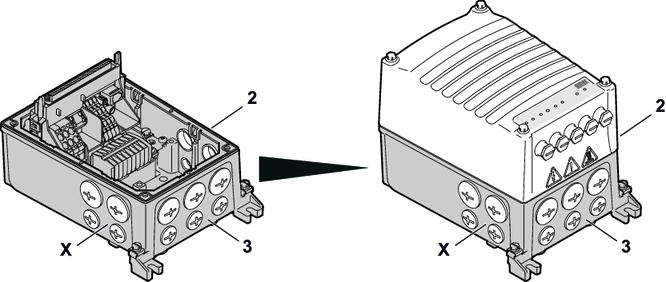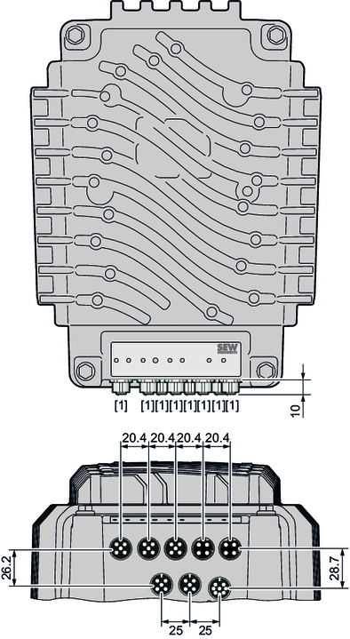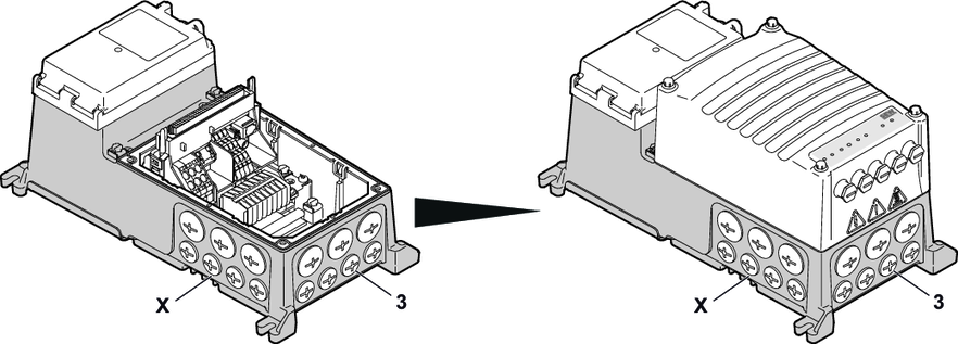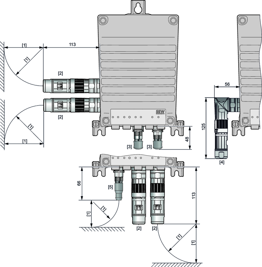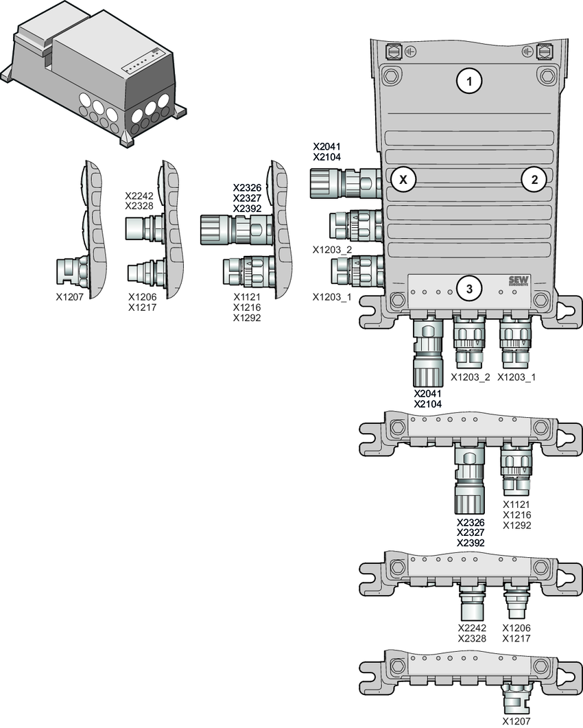规格MMF1../DFC..和MMF1../DSI..的插接头位置
