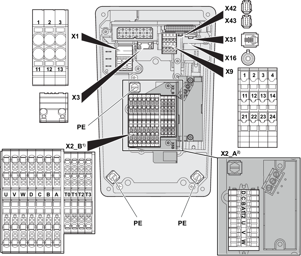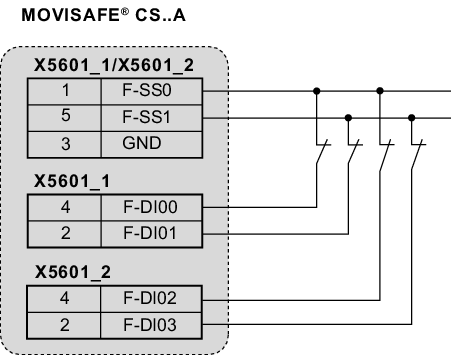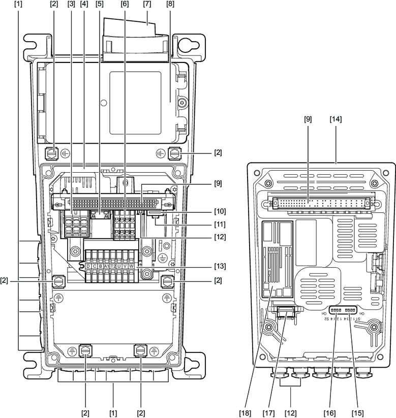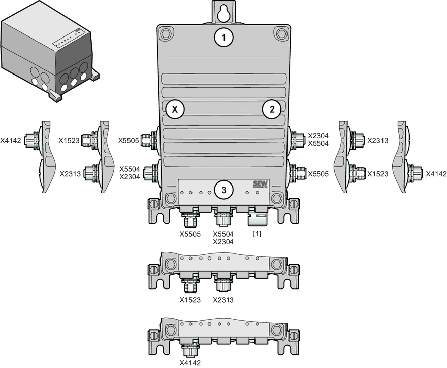 带安全数字量输入端的电子设备盖板DFC的插接头位置