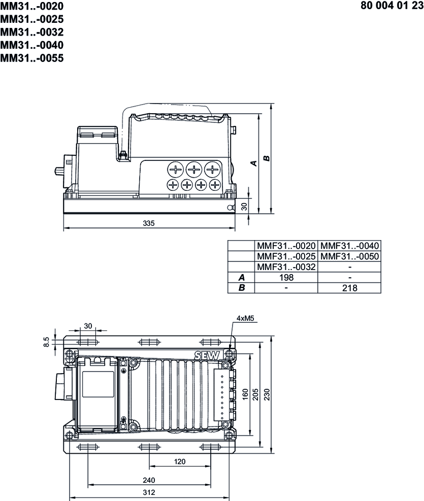 规格MMF31../DFC..和MMF31../DSI..的插接头位置