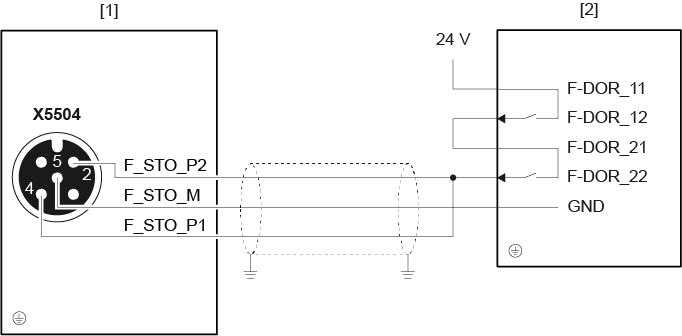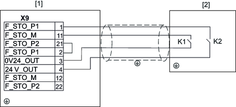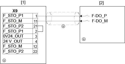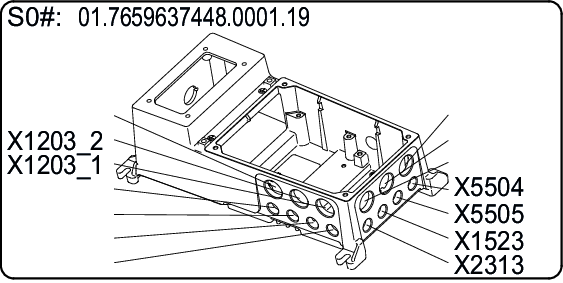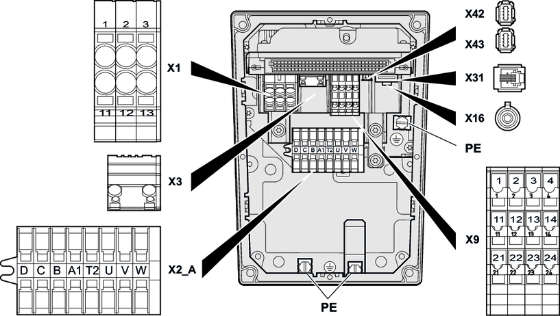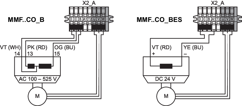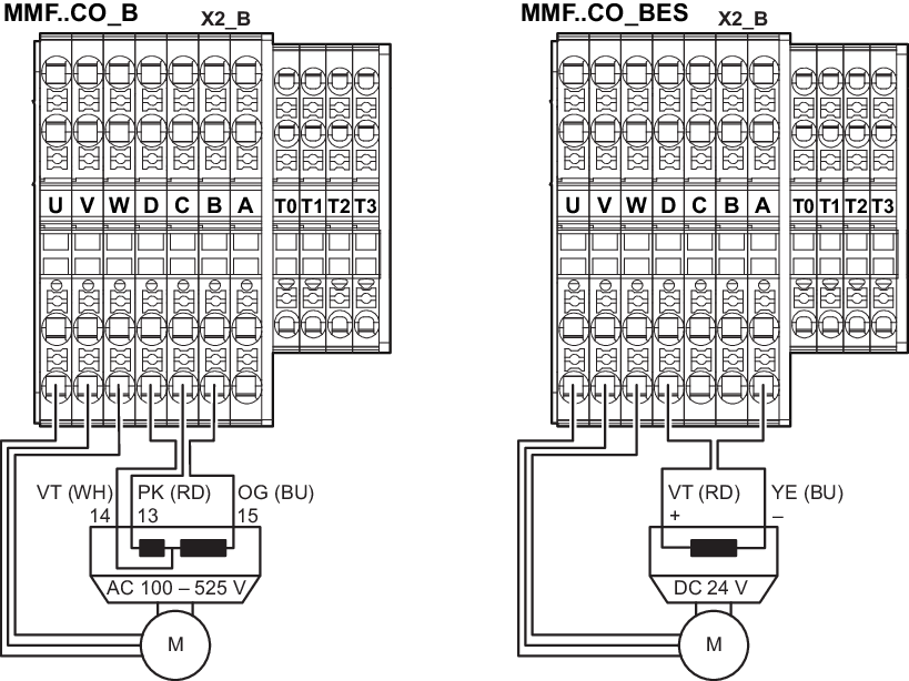 Atuação dos bornes X2_B para motor, freio e sensor de temperatura