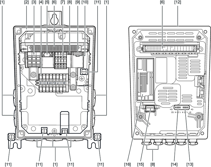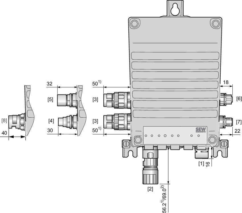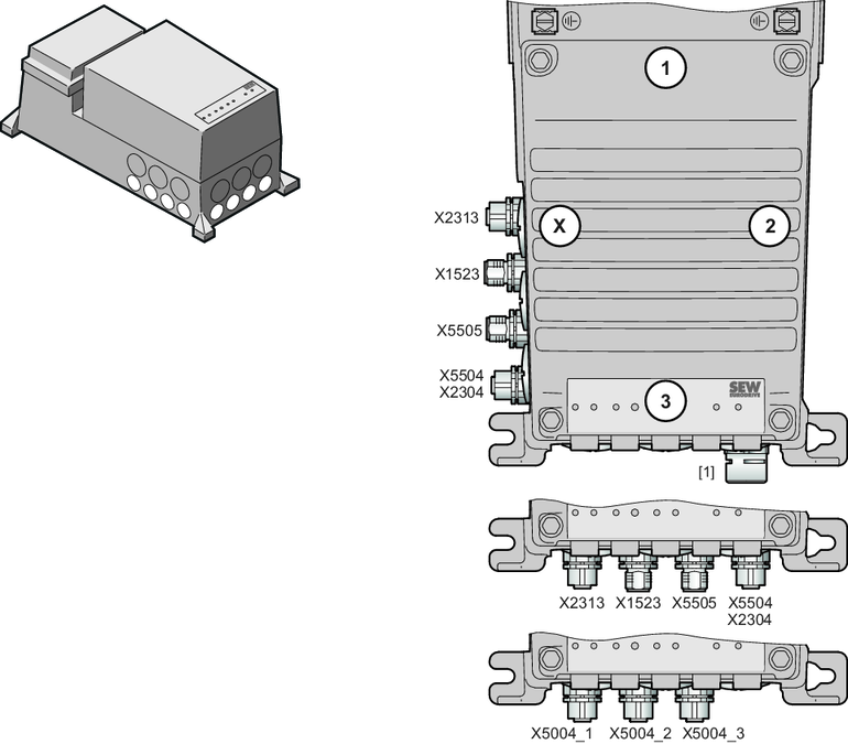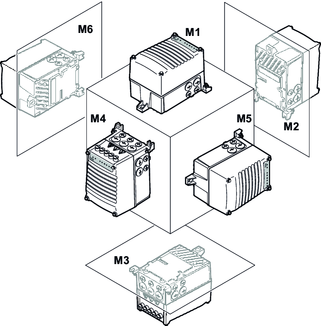 - Posições do conector nas versões MMF1../DFC.. e MMF1../DSI..