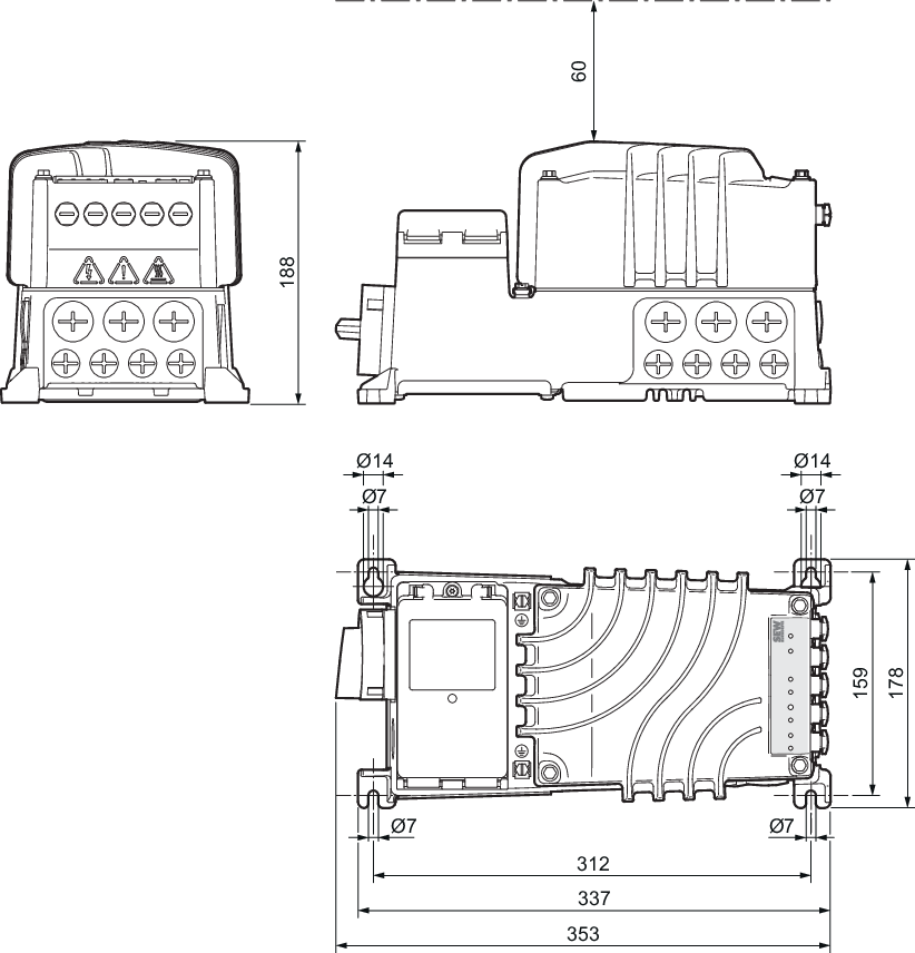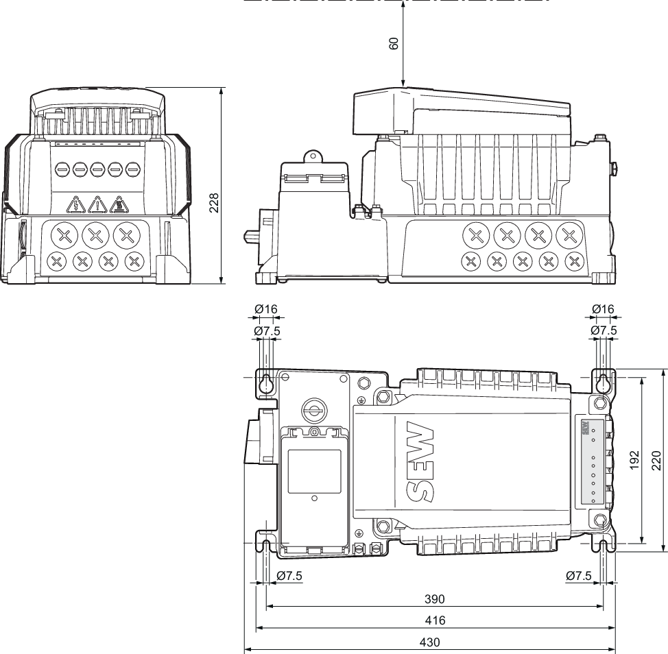 - Posições do conector nas versões MMF32../DFC.. e MMF32../DSI..