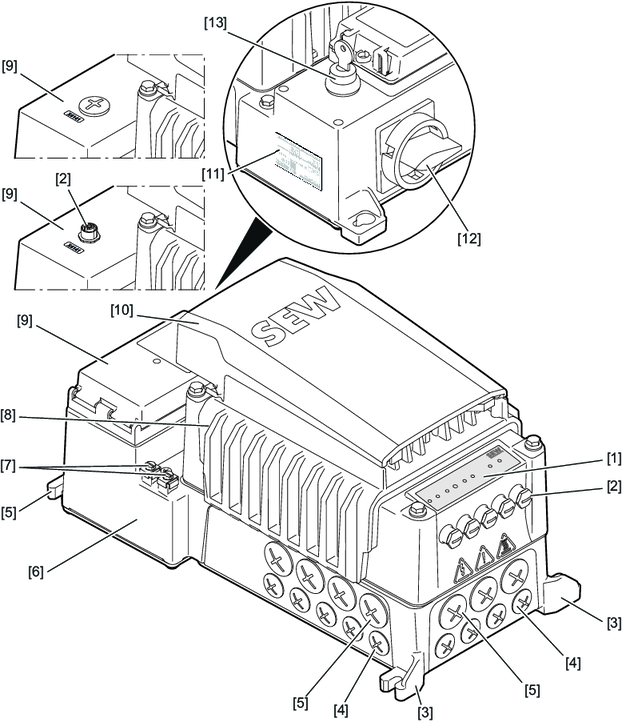 - Posições do conector nas versões MMF31../DFC.. e MMF31../DSI..